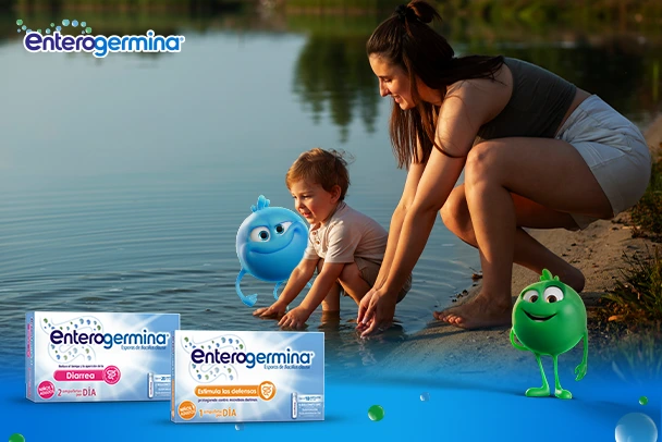 - Enterogermina® suspensión 4 billones: además de ser auxiliar en el tratamiento de alteraciones digestivas como la diarrea, también estimula las defensas naturales del organismo. Se recomienda para lactantes, niños menores y mayores de 12 años, y adultos según su dosis.