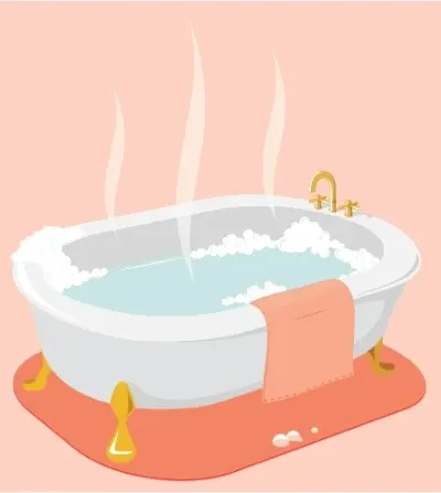 Assim como a compressa, o banho quente proporciona não só um relaxamento na região abdominal como também no corpo todo.7